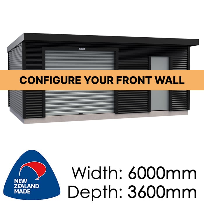 A modern versatile two zone design shed. Create your dream workspace, workshop, sleepout or storage simply by selecting the front wall configuration to suit your needs. A roller door must feature in your front wall configuration but you can add a Ranchslider, a PA Door, a Window or a second Roller Door depending on your requirements.