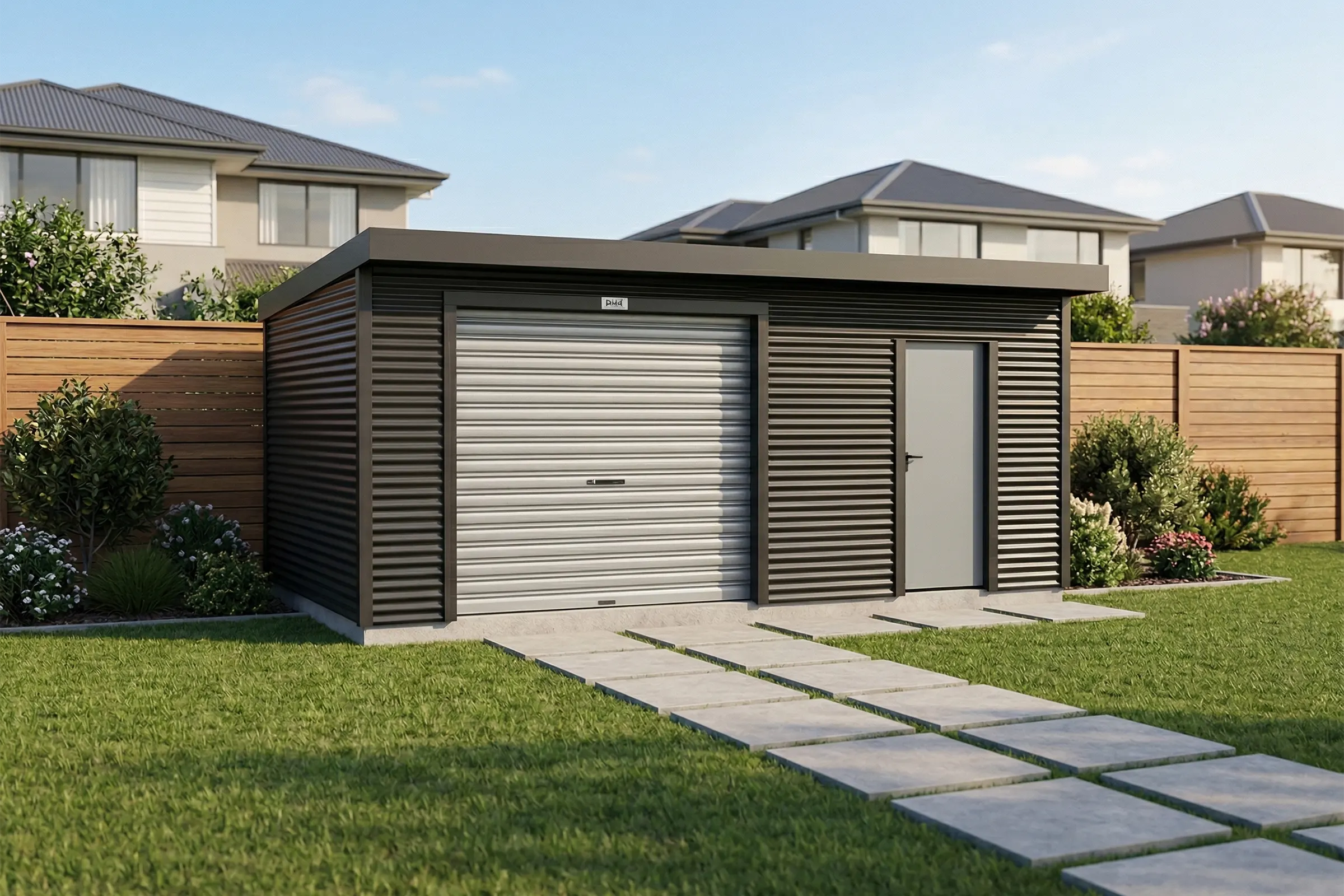A modern versatile two zone design shed. Create your dream workspace, workshop, sleepout or storage simply by selecting the front wall configuration to suit your needs. A roller door must feature in your front wall configuration but you can add a Ranchslider, a PA Door, a Window or a second Roller Door depending on your requirements.