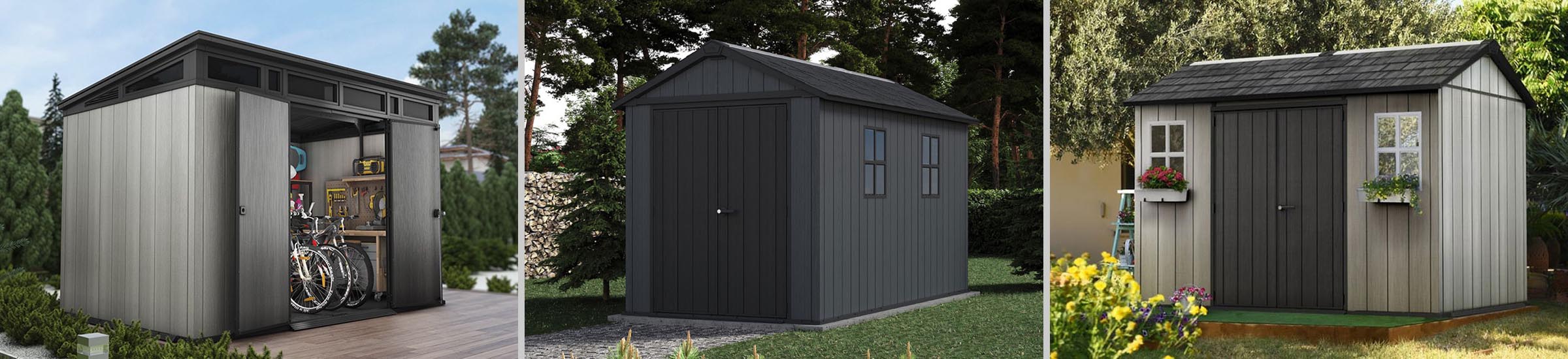 Keter Oakland: Equipped with paintable DUOTECH™ walls and a rustic aesthetic, this range is steel-reinforced, weather-resistant, and ideal for those seeking a traditional look.