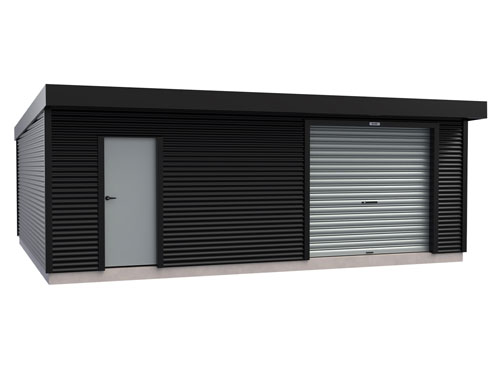 This configuration includes a 2.4m roller door and a PA door on the front wall.