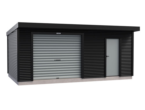 This configuration includes a 2.4m roller door and a PA door on the front wall.