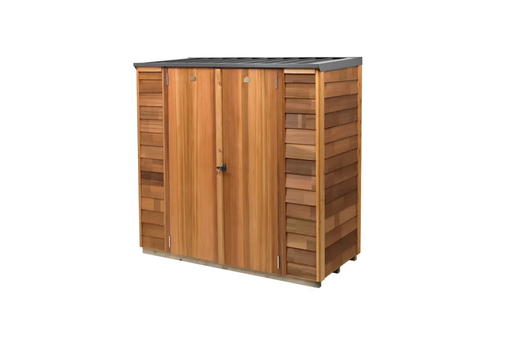 This shed is designed with a modular panel system and solid treated framing clad with cedar weatherboards, making it a practical project for confident DIYers.