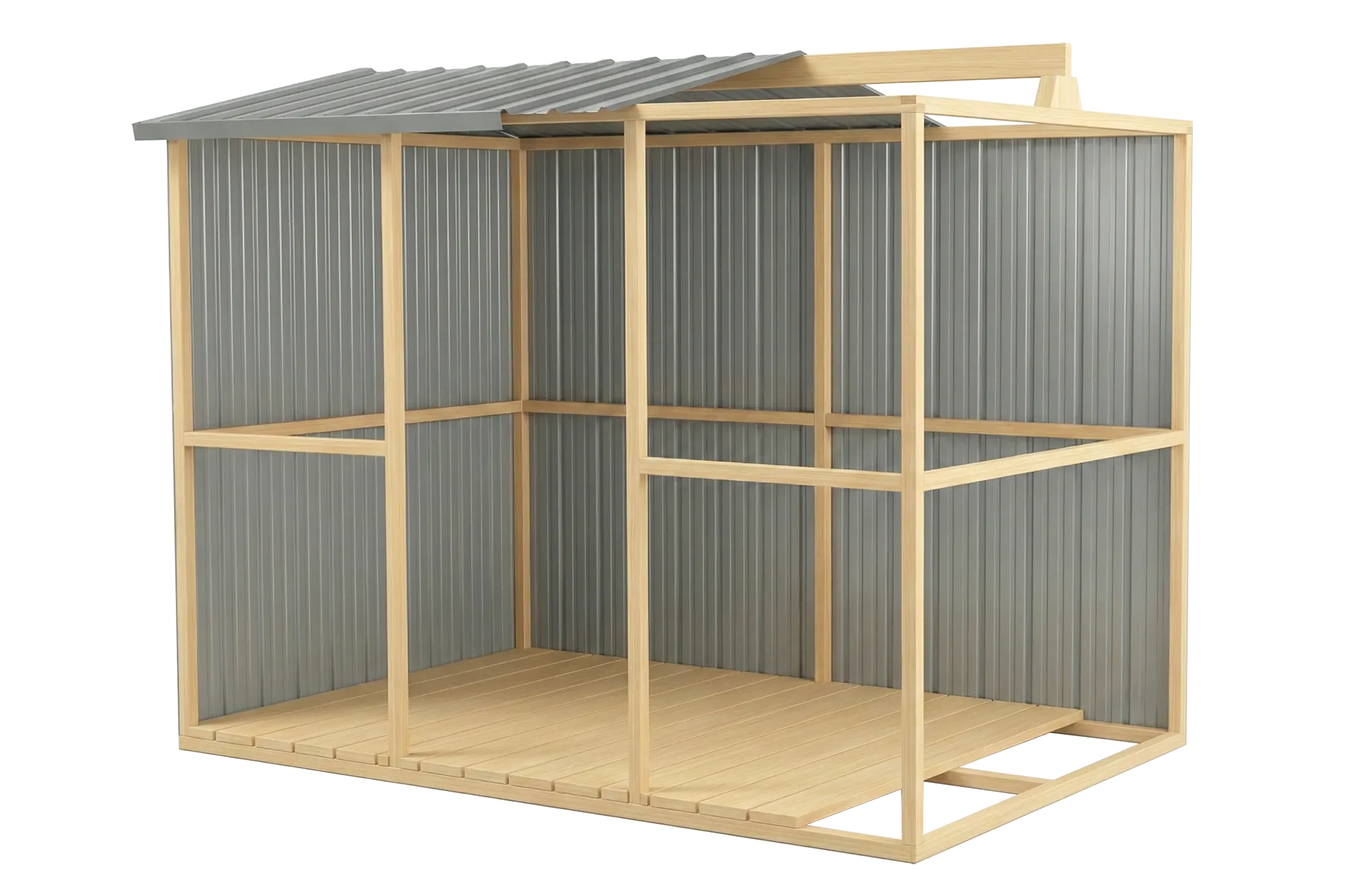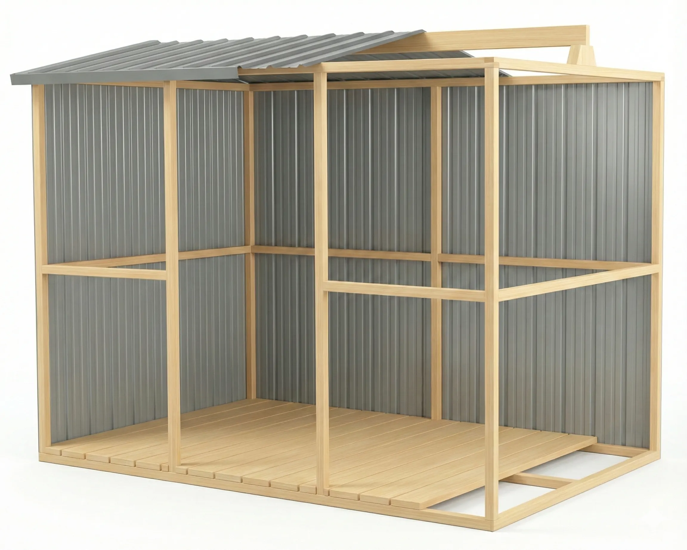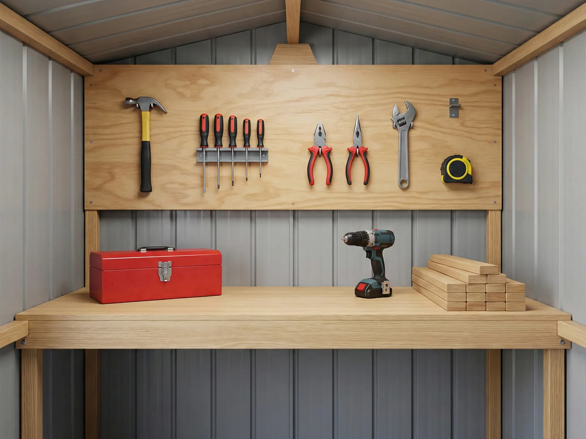 - Interior Layout – Use the full timber frame to easily mount shelves, tool boards, and workbenches exactly where you want them, or line the walls with ply to create a more workshop-like interior.