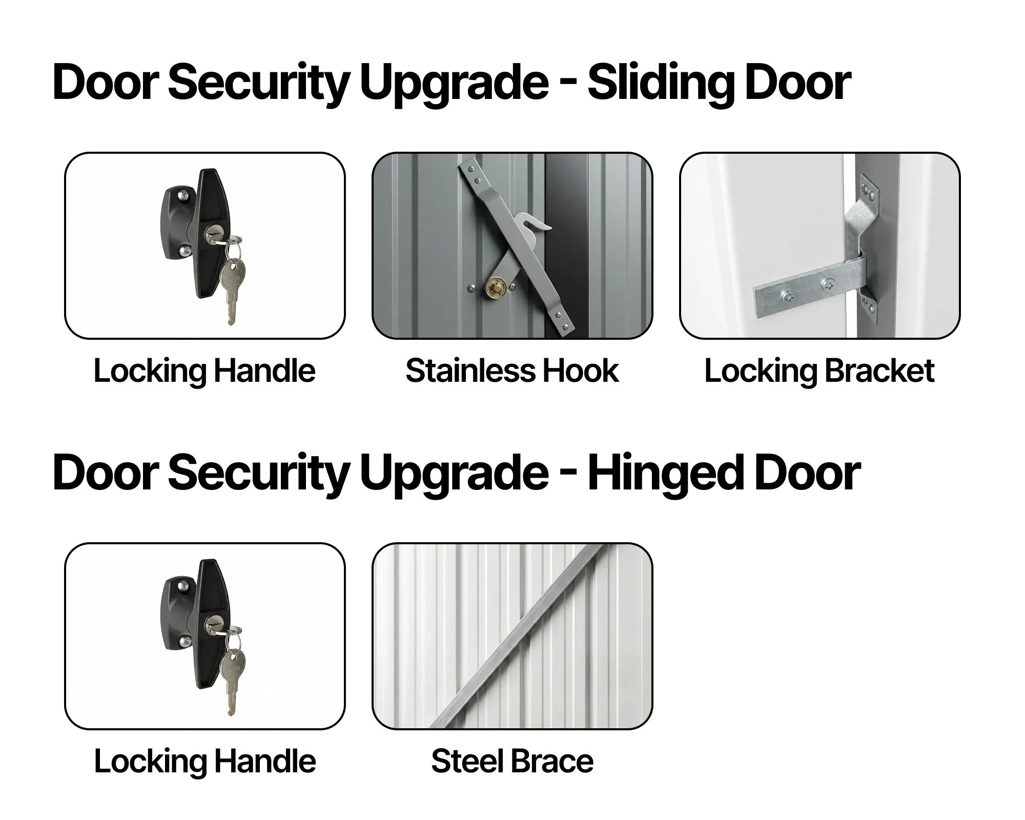 - Security & Power – Include the security upgrade and take advantage of the internal timber frame to more easily run cables and mount devices such as an e-bike charger (installed by a suitable person where required).