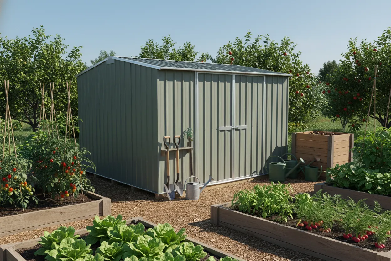 - Use the generous internal area and wide double doors to configure storage for mowers, wheelbarrows, outdoor furniture, bikes, and more.
