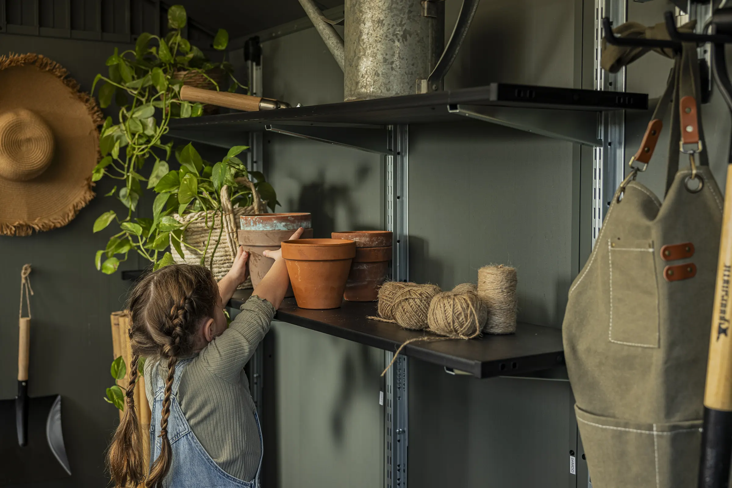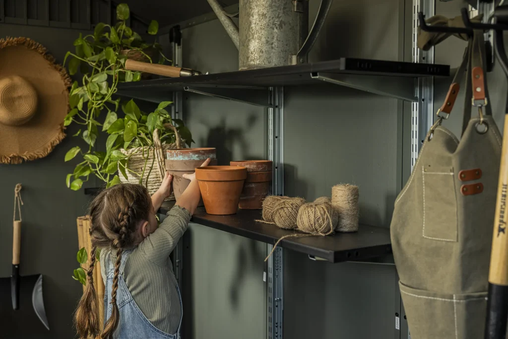 • Included wall shelves provide flexible storage options so you can keep key items within easy reach and adjust your setup as your gardening projects change.
