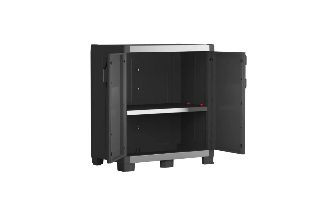 The Keter XL Garage Base Cabinet offers robust, secure storage for tools, DIY equipment, and household items, ideal for busy garages and workshops. Its reinforced construction and lockable doors help keep contents safe and organised, while an adjustable shelf lets you tailor the interior to different-sized items.