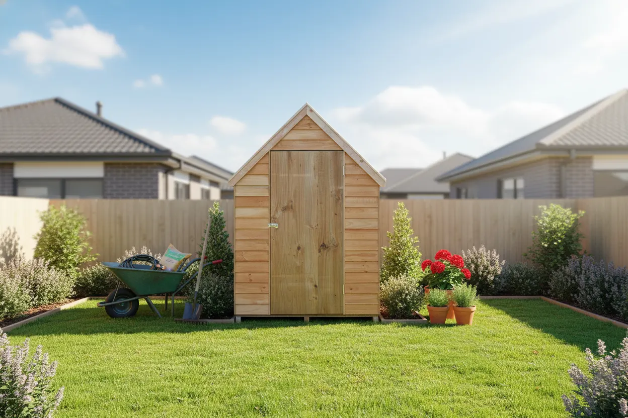 • Interior storage: Optional timber shelving sets can be added to organise tools, pots, and accessories, helping you customise the internal storage layout.