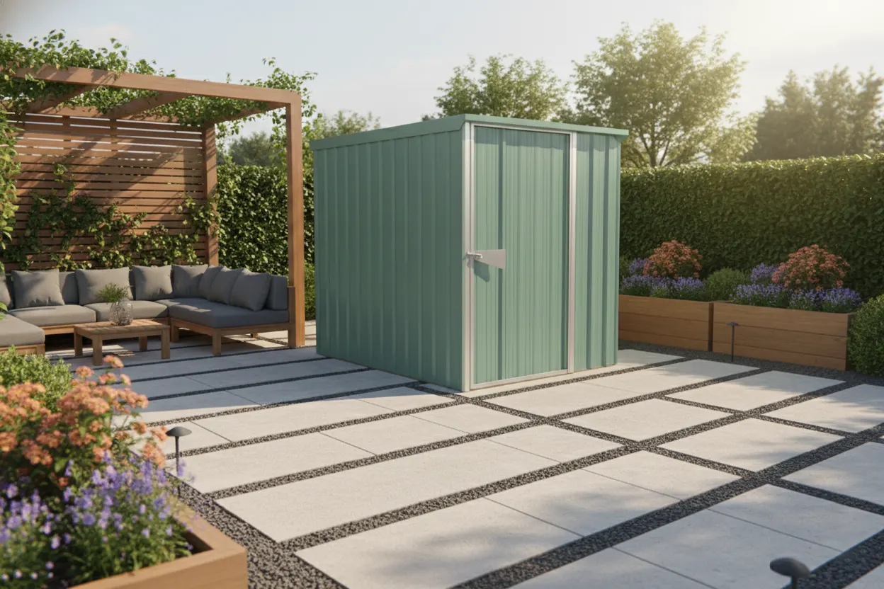 - Add a heavy duty workbench to create a compact workshop zone within the shed footprint.