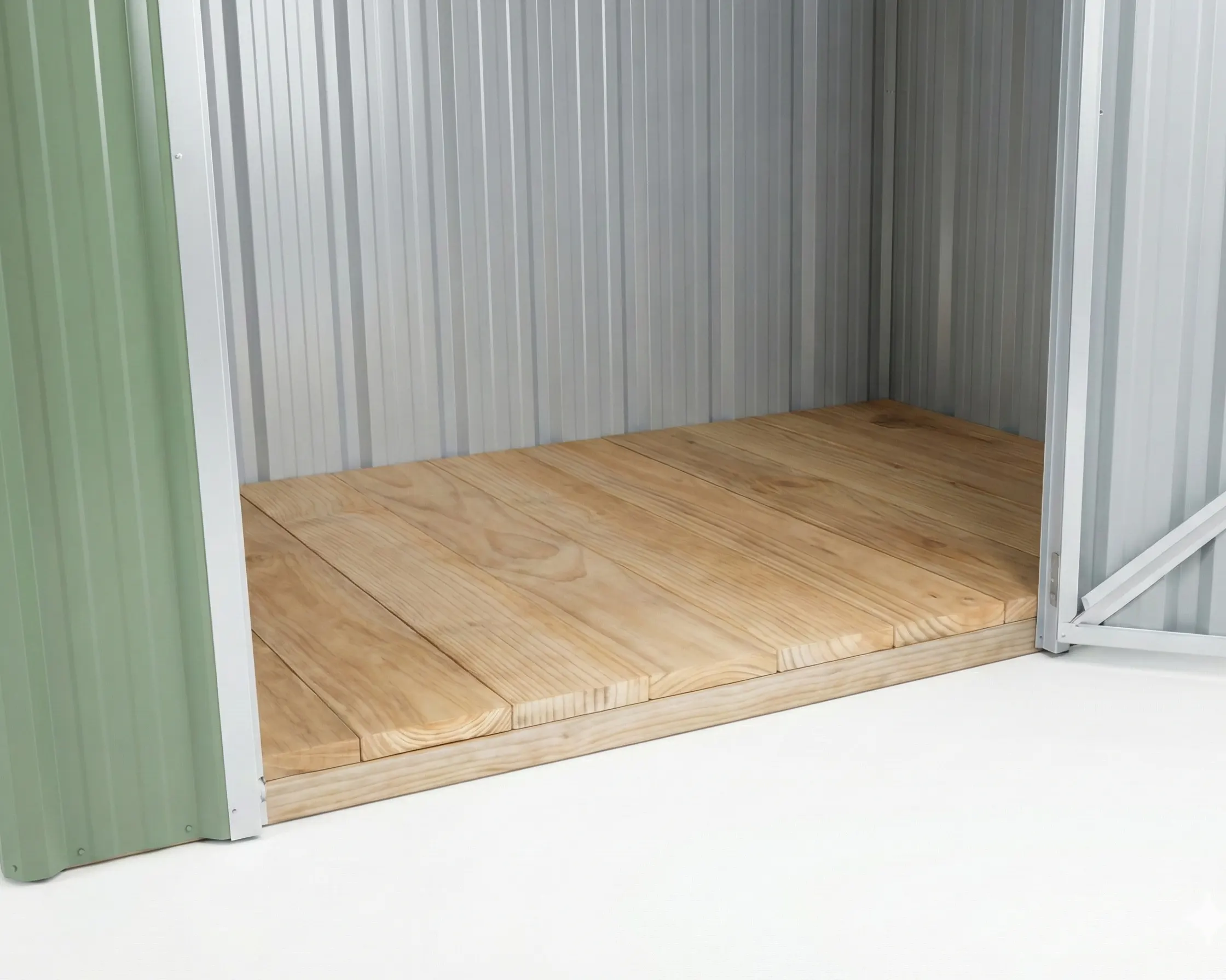 - Choose a wooden floor for a more solid underfoot feel and added rigidity, especially useful if you plan to move the shed later.
