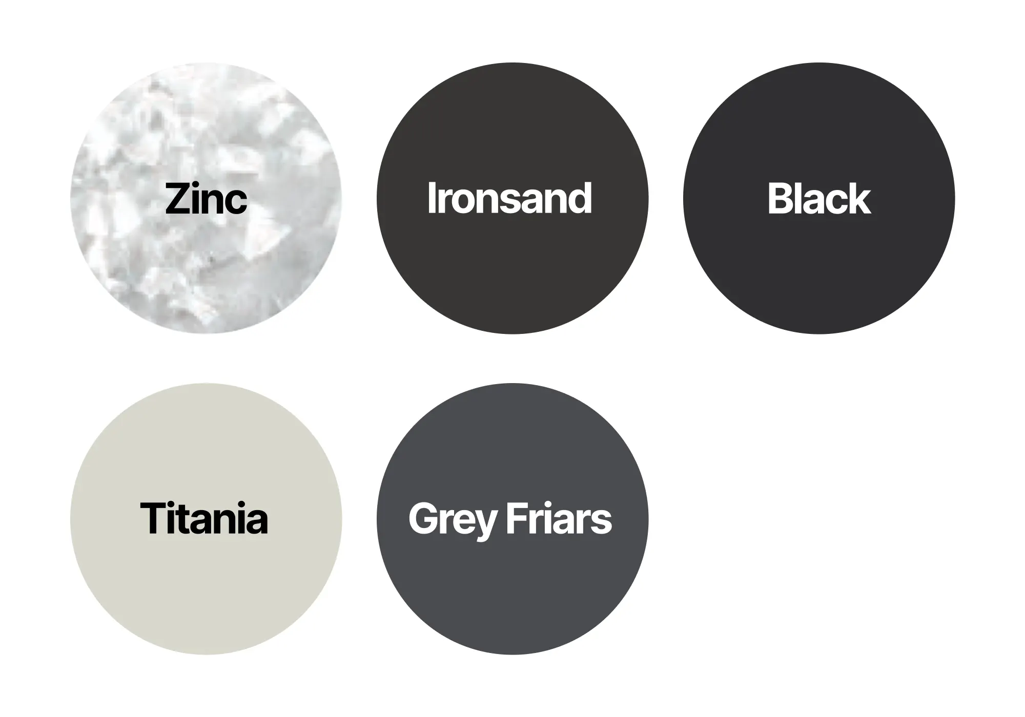 - Colour Choice: Select from four contemporary finishes – Ironsand, Greyfriars, Titana, and Black – to coordinate with your home and surrounding structures.