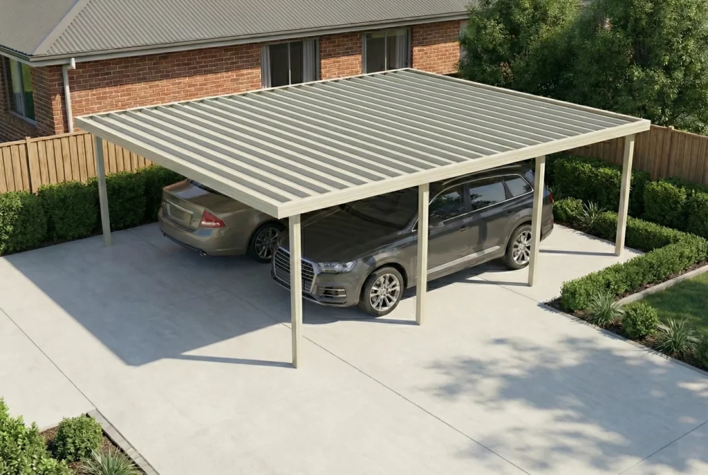 - Size & Layout: Base and roof dimensions are engineered to suit use as a double carport, with options to adjust clearance height for taller vehicles.