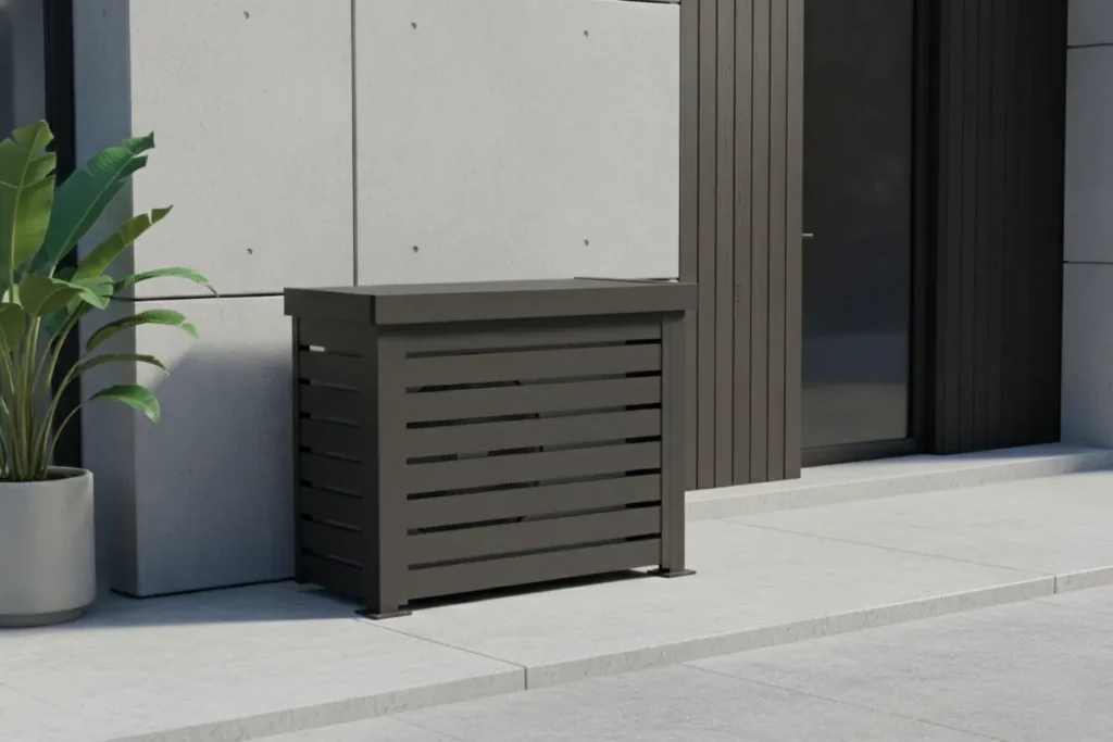 The Uglee Air Con Cover – Small is a New Zealand-made aluminium cover designed to conceal and protect your outdoor air conditioning unit while enhancing your home’s exterior. Sitting neatly against the house with no back wall, it offers a streamlined, low-maintenance solution, with pre-constructed panels and a Dulux powder coat finish for long-lasting performance.