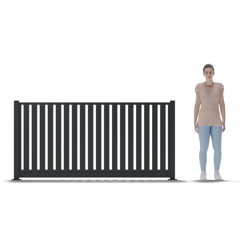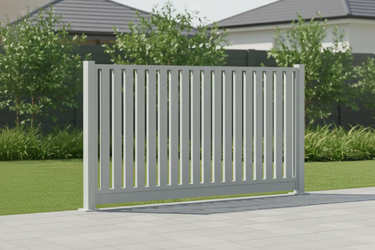 - Custom gates to match – Add custom gates up to 6000mm wide to maintain a consistent vertical slat look across entrances and access points.