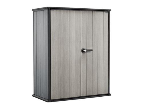 This durable garden shed offers wide double doors, a sloped threshold for easy access, and a heavy-duty floor to keep items clean and dry. Two shelves are included to maximise space. Made from weather-resistant DUOTECH™ walls that can be painted to suit your garden.