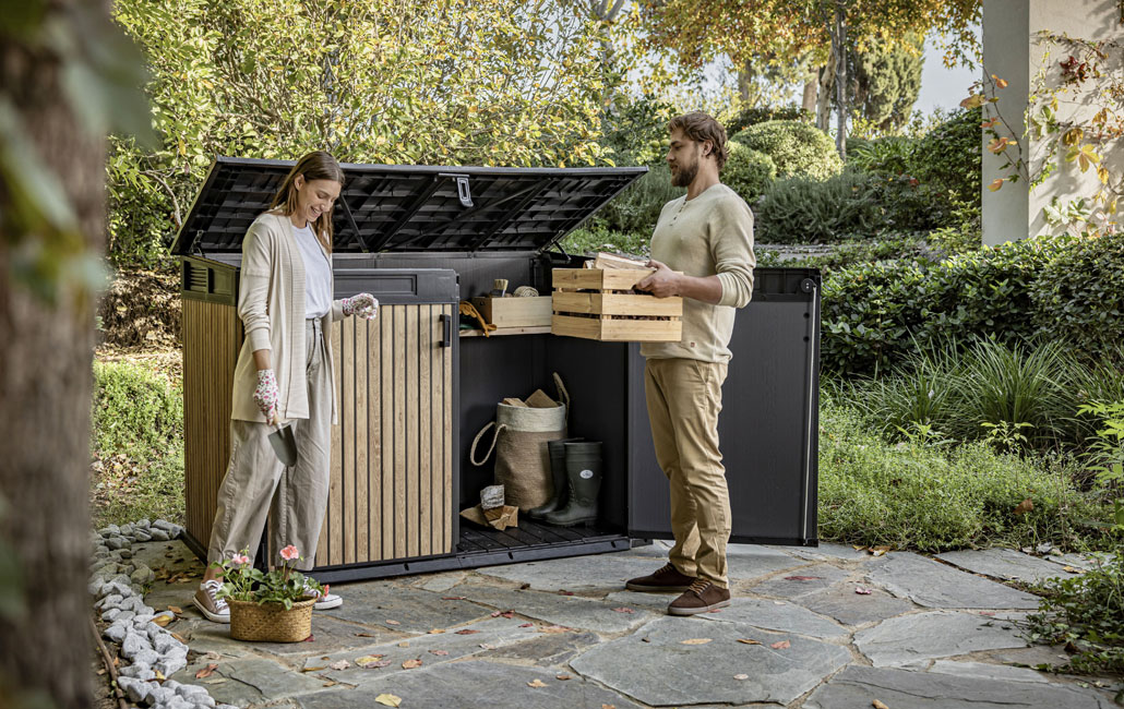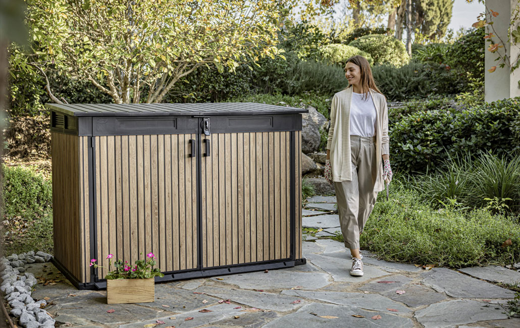 Keep your backyard organized with the Keter Venetian Grande Store Shed. With 2020L of storage, double-locked doors, and a hydraulic top, it’s perfect for bikes, bins, and outdoor gear. Built-in ventilation keeps items fresh, while DECOCOAT™ resin walls resist weather, rust, and fading. Easy to assemble and upgrade with adjustable shelves, it combines security, style, and durability.