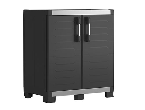 The XL Garage Base Cabinet is built for tough storage needs with a clean, modern look. It features a reinforced base, metal handles and hinges, and one adjustable shelf that holds up to 45kg. Lockable doors add extra security for your gear.