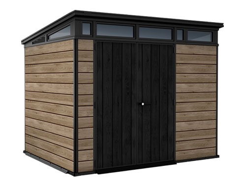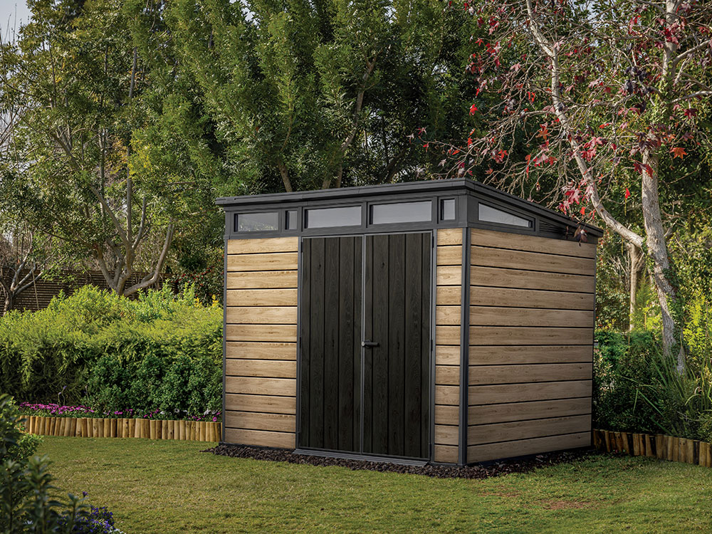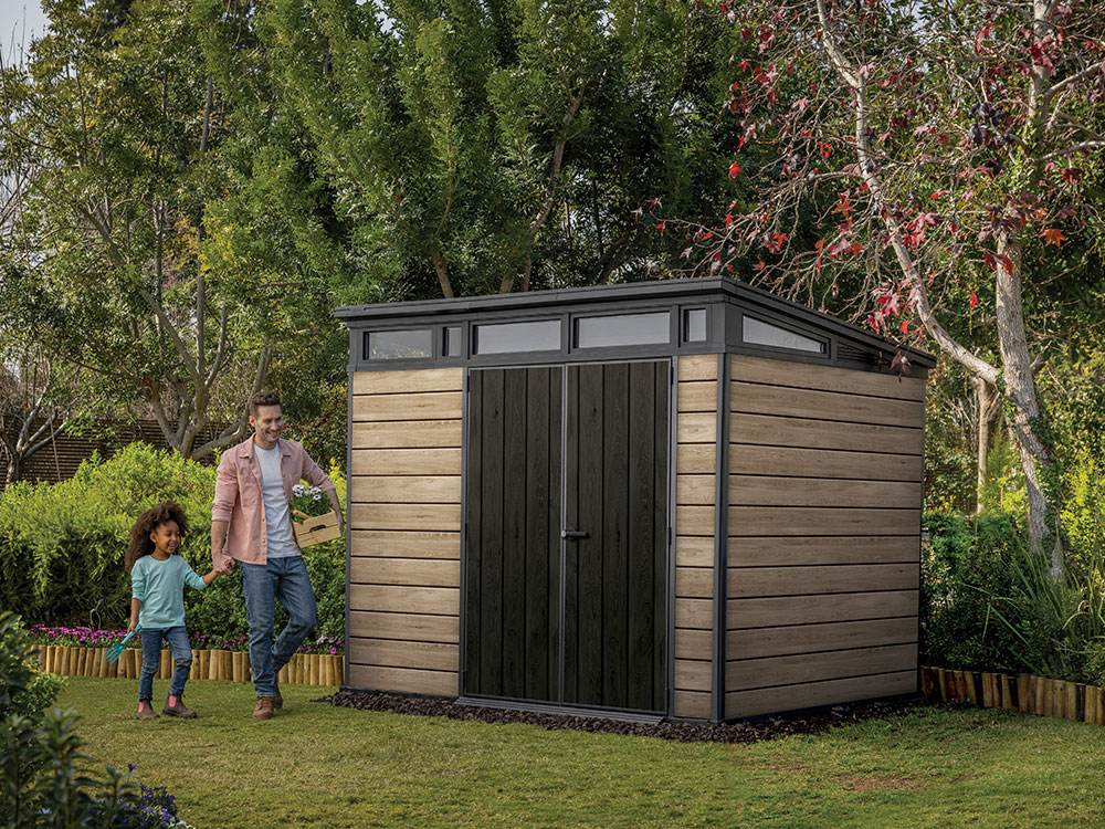 The Ashwood 9×7 combines elegance, durability, and practicality for any outdoor space. Its realistic Ashwood-look DECOCOAT™ walls, crystal-clear windows, and modern design add style and natural light, while 11 m³ of storage with double lockable doors keeps gear secure. The weather-resistant walls, steel-reinforced roof (150 kg/sqm), and heavy-duty floor ensure lasting protection, with easy assembly via precut panels.