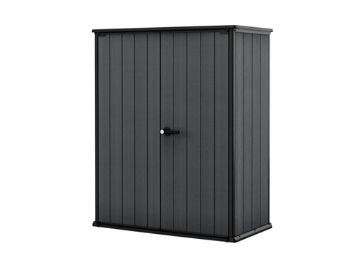 The Cortina Alto is a tall, space-saving storage solution with a 1400L capacity. Easy to assemble with household tools, it includes shelves for organised storage. Built with metal hinges and lockable doors for added security and durability.
