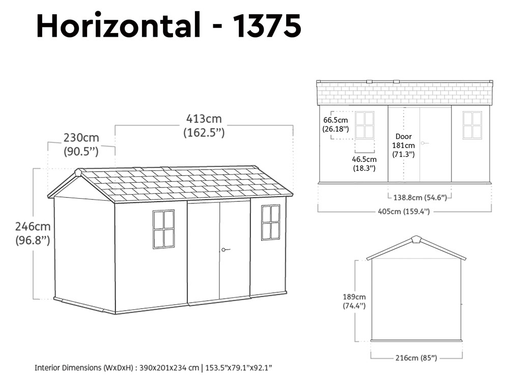 External Width: 2300mm, Depth: 4130mm, Height: 2460mm