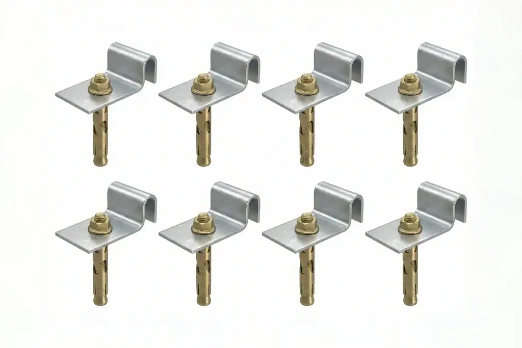 The kit has a unique bracket design to clamp down tightly onto the channels and includes 8 floor clamps and 8 fixing screws.